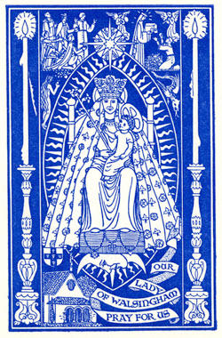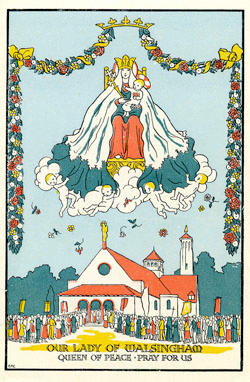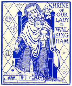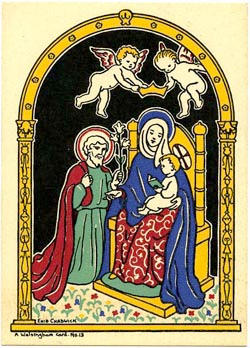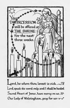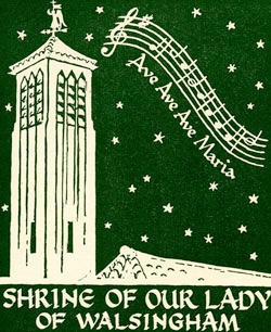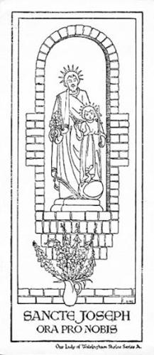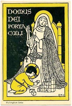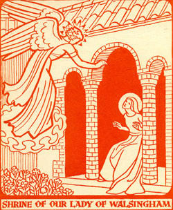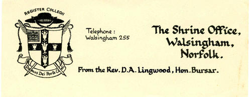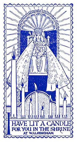 Enid Chadwick created innumerable designs for cards, notices, letterheads, orders of service and any other Shrine need. Some of the cards were also published in other colours. She also designed Christmas cards. Below is a miscellany of examples, and four of her sketches scattered throughout Our Lady's Mirror.(in copyright until 31 December 2057)