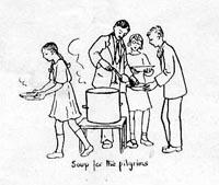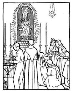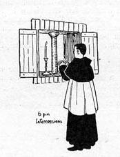 Enid's drawings and cartoons appeared in Our Lady's Mirror in the 1940s and 1950s and many were published together as a booklet called The Shrine in a Lighter Vein, which is not shown on this website; below are four examples.
